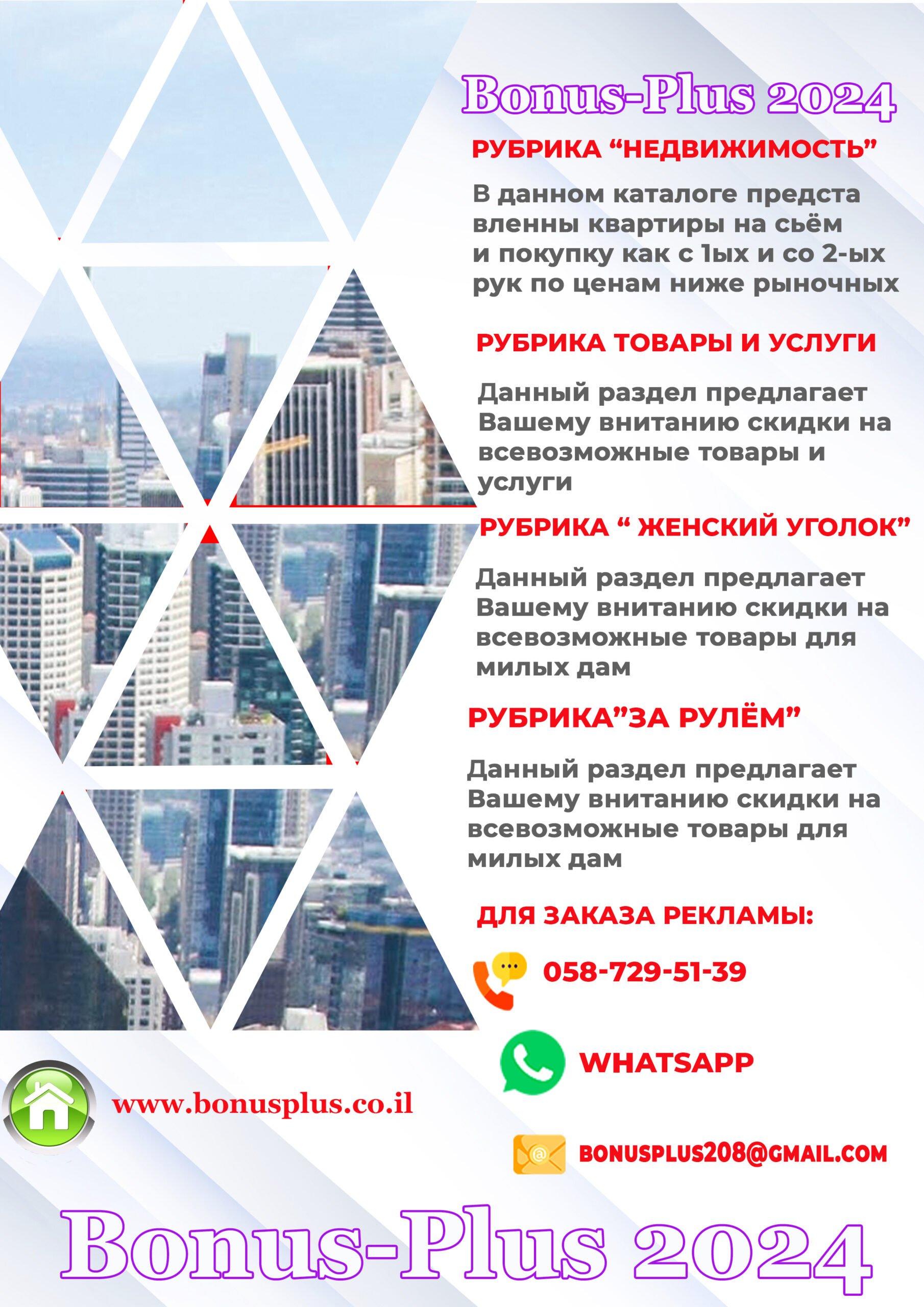 מדי מספר חודשים, חברתנו משיקה קטלוג עסקים דיגיטלי בשפה הרוסית בשם "ביקוש והיצע", המציג פרסומי נדל"ן לצד הנחות ומבצעים על שירותים ומוצרים של בתי עסק, חנויות ורשתות באזור הערים בת ים, חולון וראשון לציון,תל אביב,רמת גן, והסביבה.